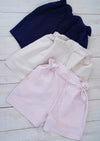 Relaxed high waist cropped straight leg shorts, with elastic waist band cut from an incredibly durable linen (flax) fabric.