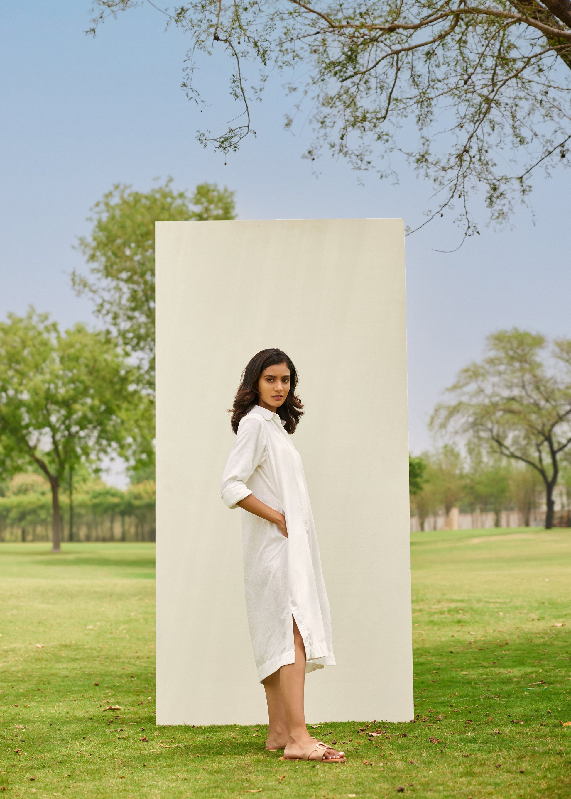 Designed for days when comfort is key, the Lounger Dress is your go-to for laid-back elegance. Made from our signature Lyocell-Cotton blend, it’s naturally breathable, soft against the skin, and designed to drape effortlessly. A clean buttonless front, relaxed fit, and side slits create a silhouette that moves with ease—perfect for slow mornings, afternoon strolls, or quiet evenings at home.
