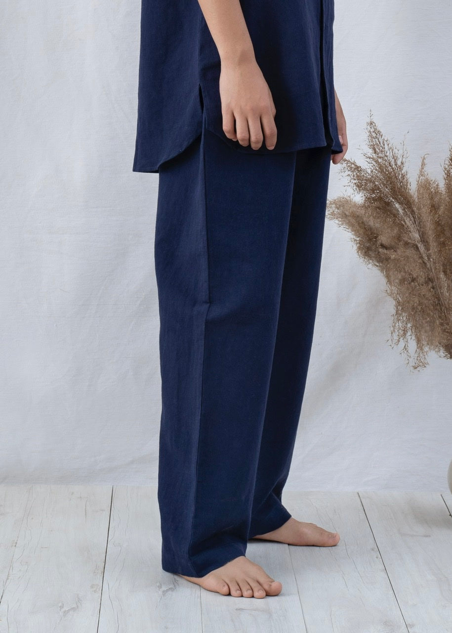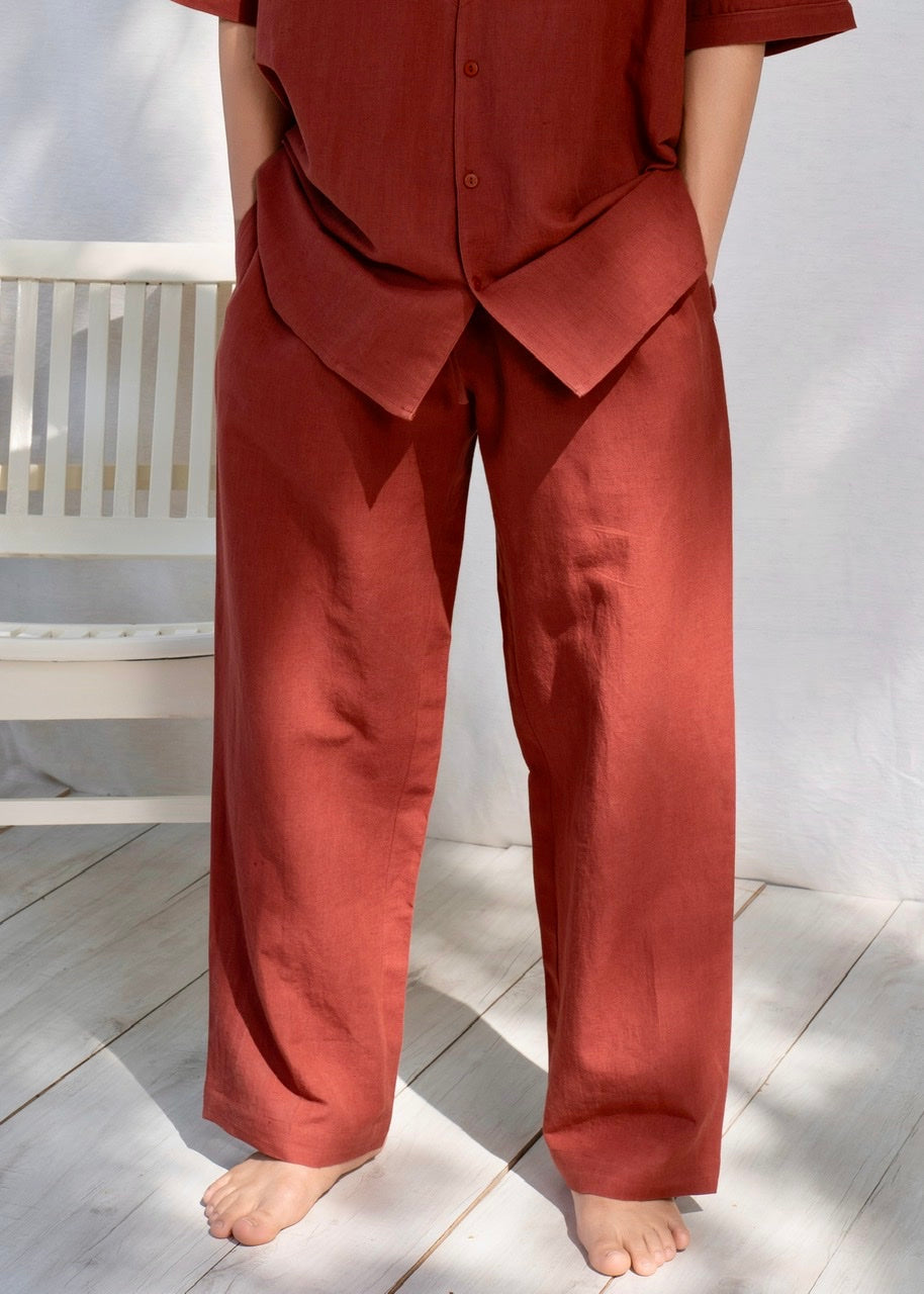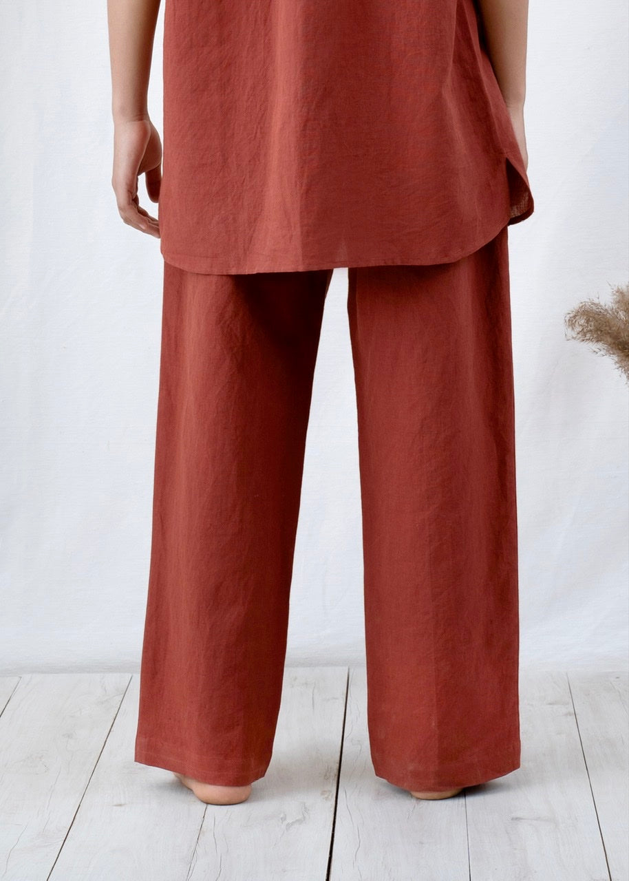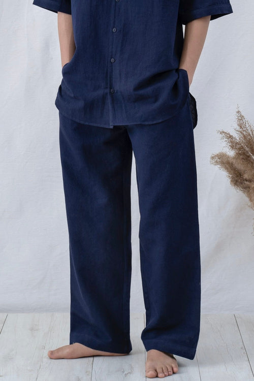 Handmade pyjama pants to be worn out, at home, or in bed. Comfortable pants with adjustable drawstrings and deep pockets for essentials cut from an exquisitely soft and pleasant Linen/TENCEL™ fabric.