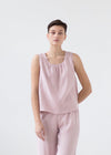 Set of Sleeveless linen sleeveless, U-neck gather detailed top paired with pyjama pants cut from an incredibly durable linen (flax) fabric.