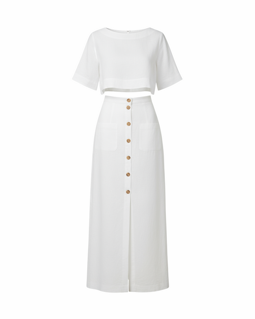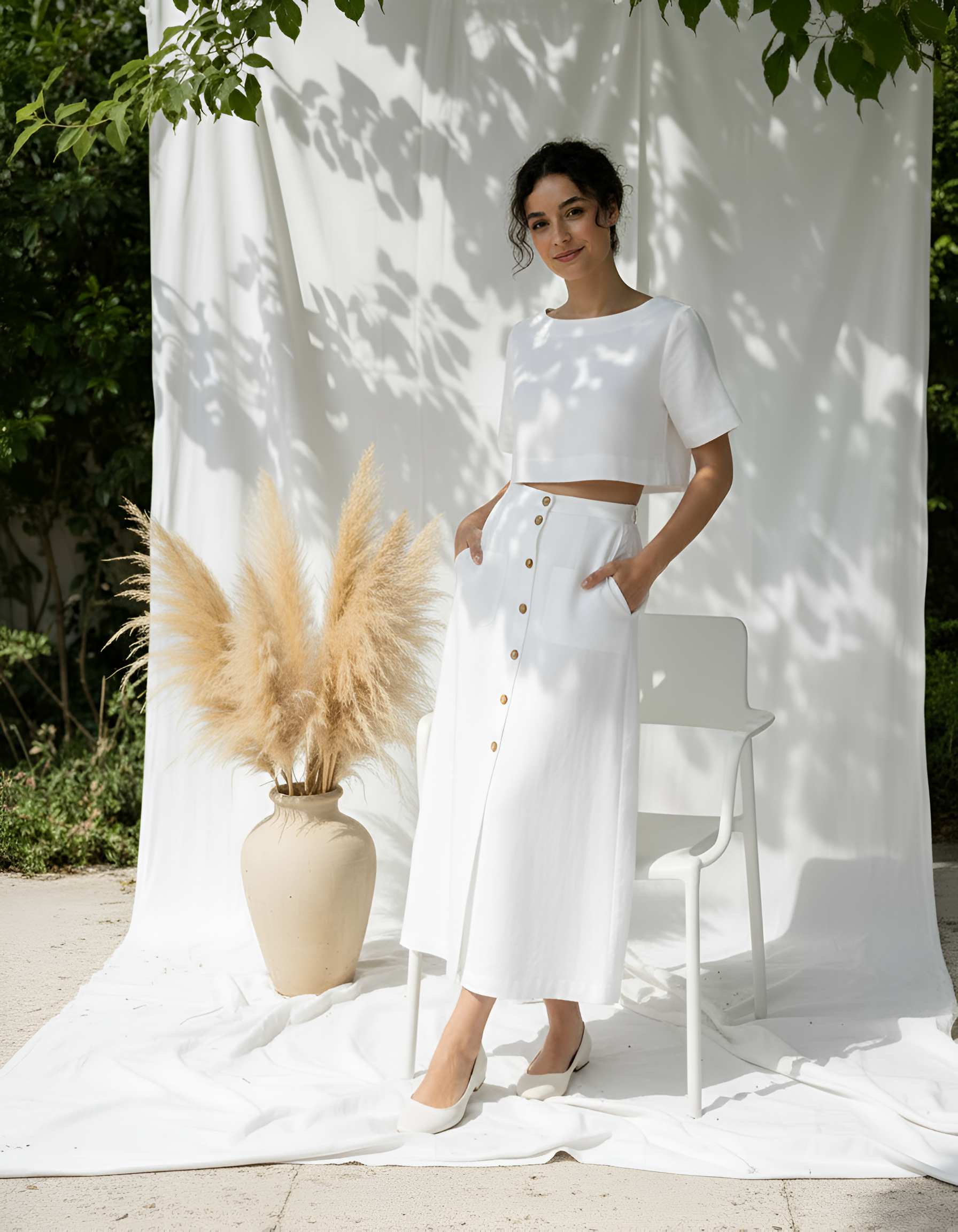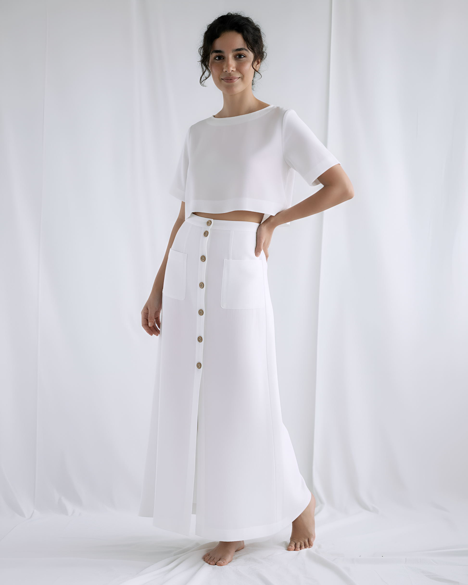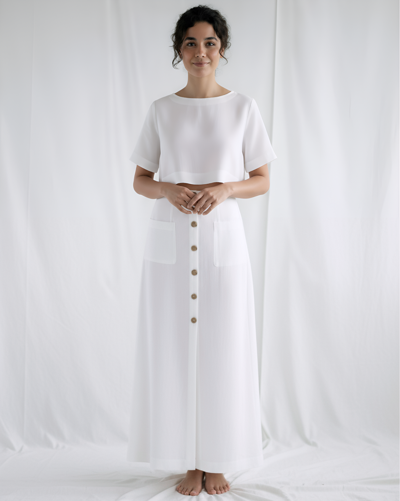 Timeless and versatile, the Coastal Maxi Skirt in ivory-white is your go-to for breezy summer days or resort evenings.