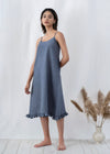 Handmade dress to be worn outside, at home, or in bed. Comfortable flared Slip Dress with ruffles at the bottom and wide pockets cut from an incredibly durable Linen fabric.