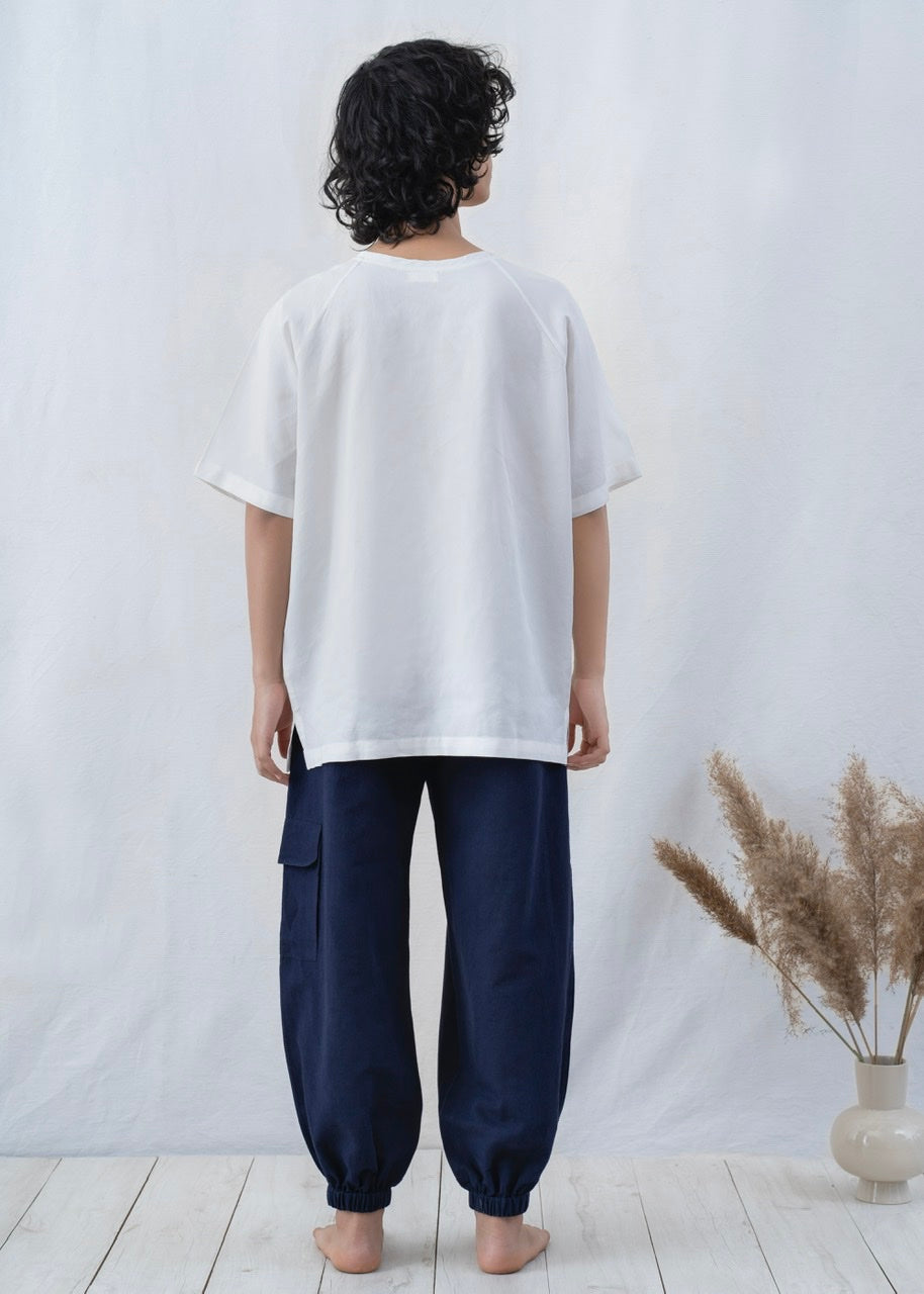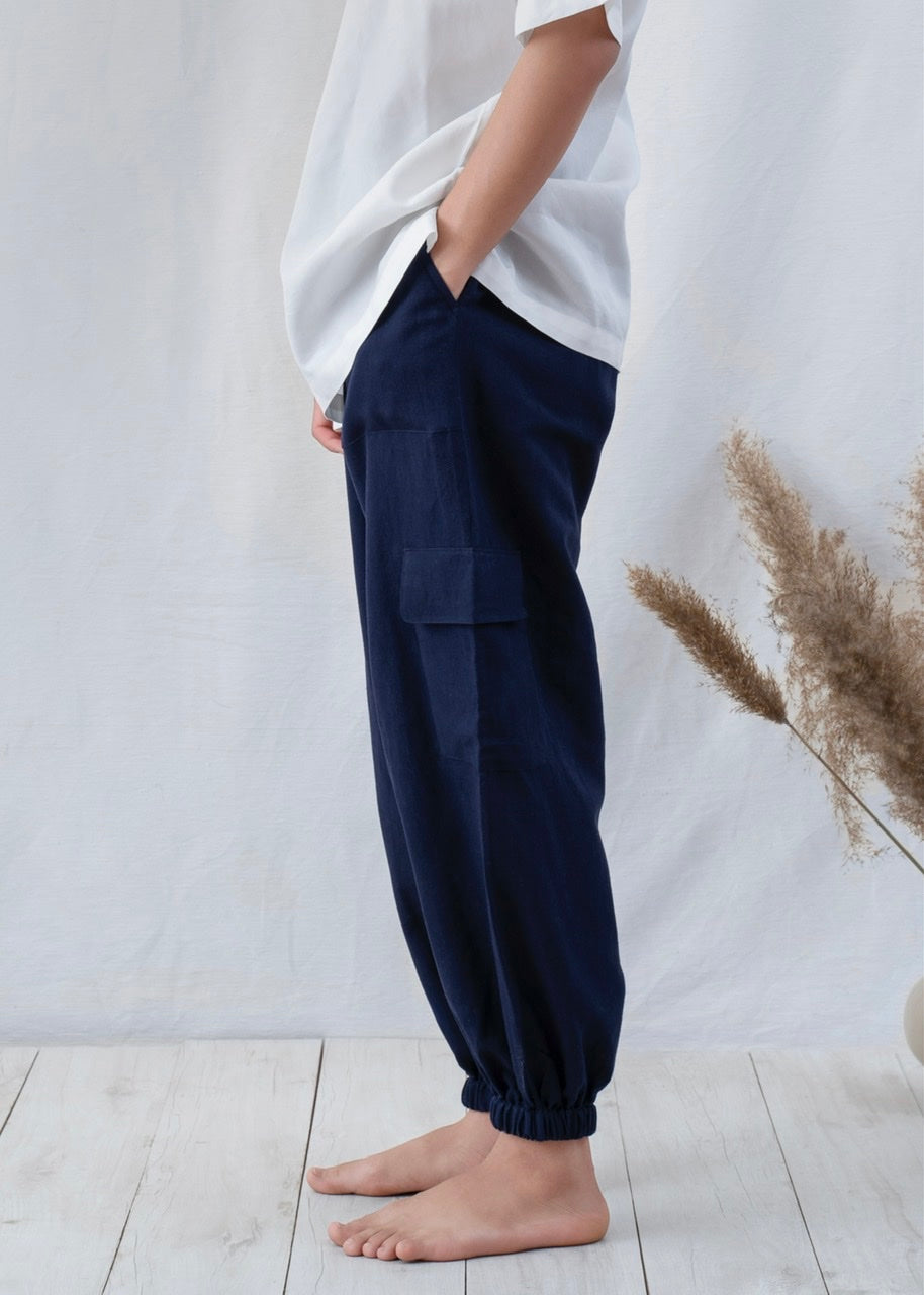 Handmade jogger pyjama pants to be worn out, at home, or in bed. Comfortable pants with adjustable drawstrings, knee pockets for essentials and soft ankle elastic cut from an exquisitely soft and pleasant TENCEL™ fabric.